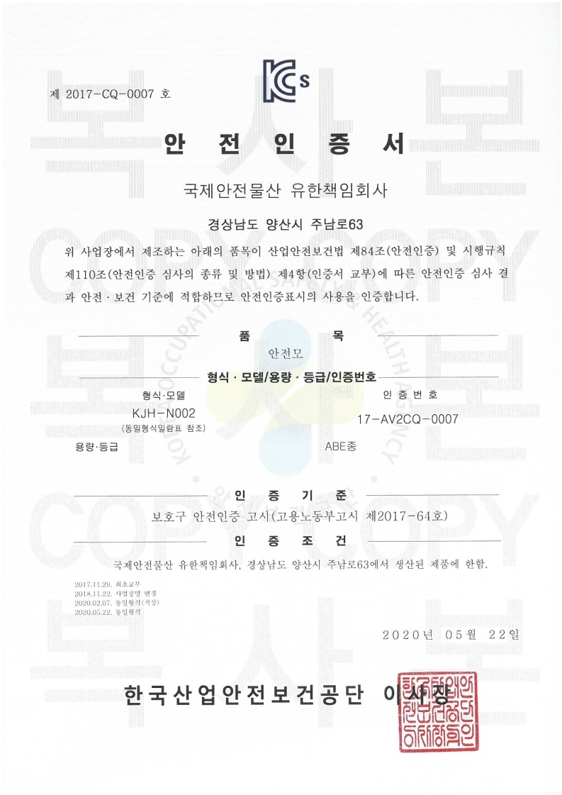 경안전모[경작업·근무모]